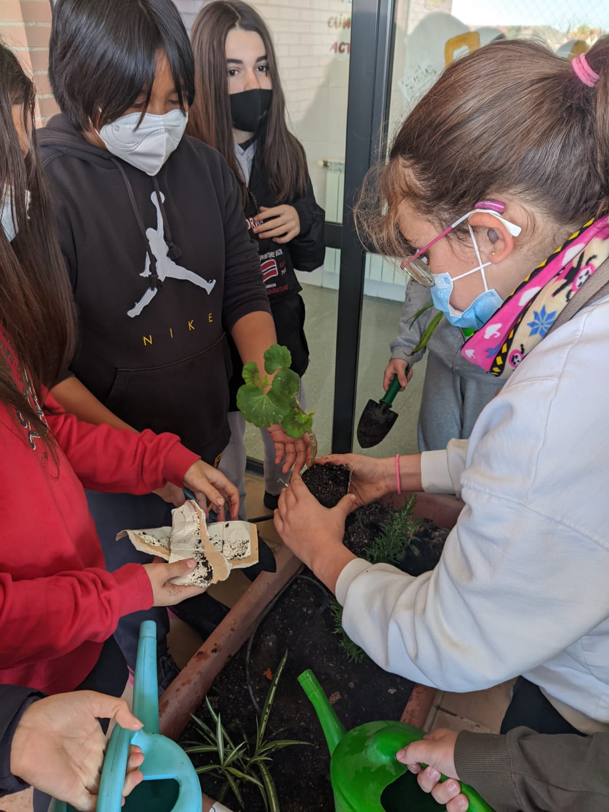 Nuestro jardín sigue su curso. Esta vez, los alumnos y las alumnas de sexto C, han plantado nuevas plantas en su jardinera.